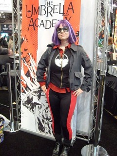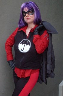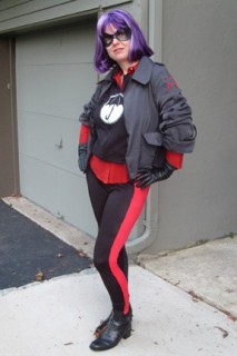 Pants are custom by me; red shirt is a thrift store find with embroidery embellishments glued onto the sleeves; black shirt is a UA logo women's t-shirt that I modified by removing the sleeves and adding a zipper; jacket is custom by me; wig is from Best Wigs OutletPhotos